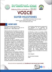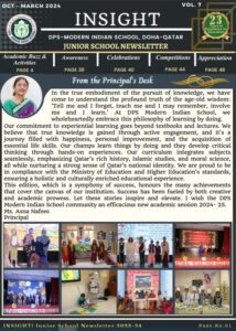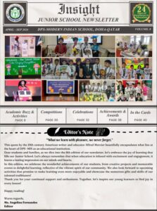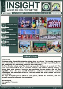 At DPS Modern Indian School, Doha – Qatar, we believe that learning extends beyond the classroom and finds its fullest expression through creativity, communication, and collaboration. Our diverse range of publications stands as a testament to the intellectual curiosity, artistic talent, and vibrant school spirit that define the DPS-MIS community. Each publication captures the voices, ideas, and achievements of our students and staff, reflecting our shared pursuit of excellence and innovation.